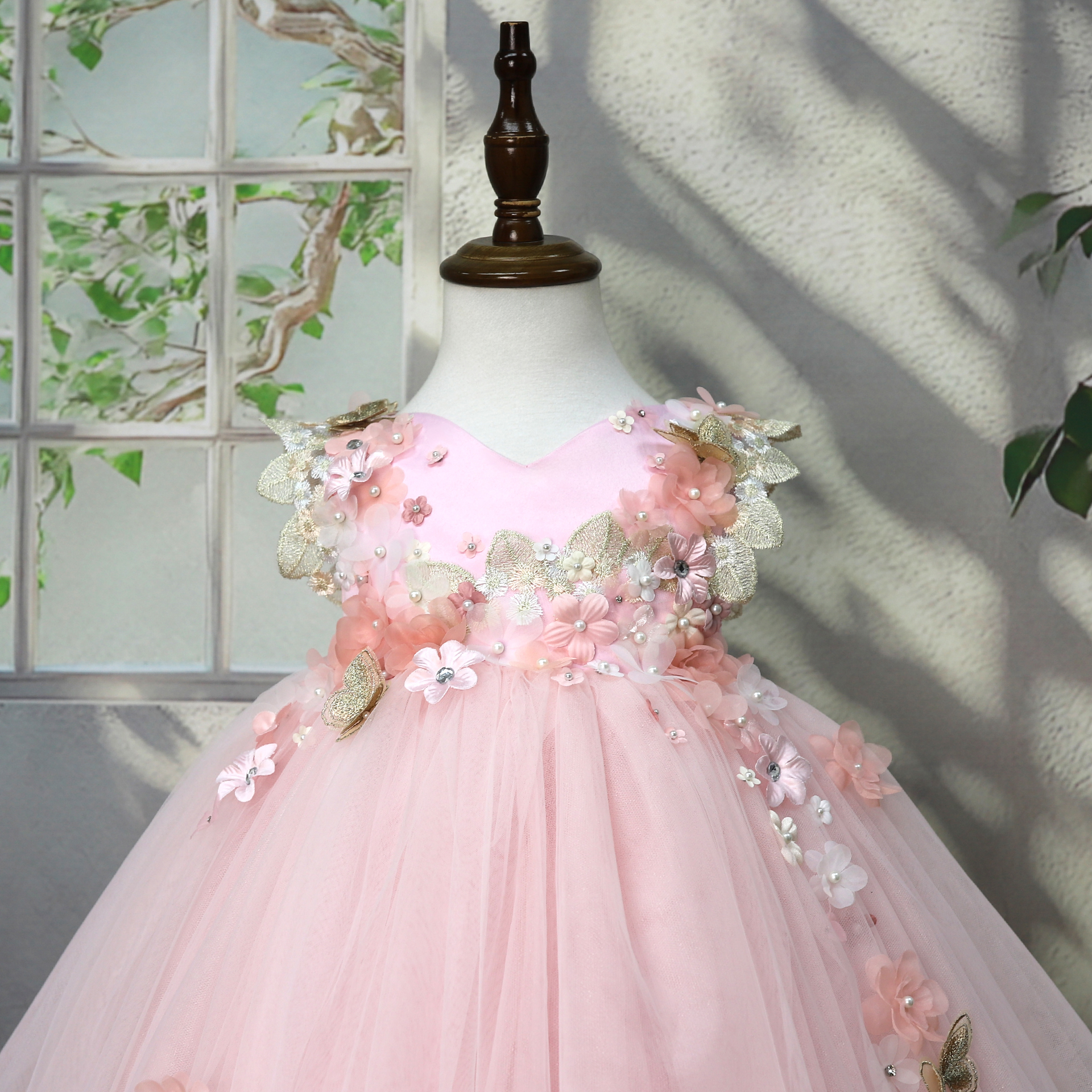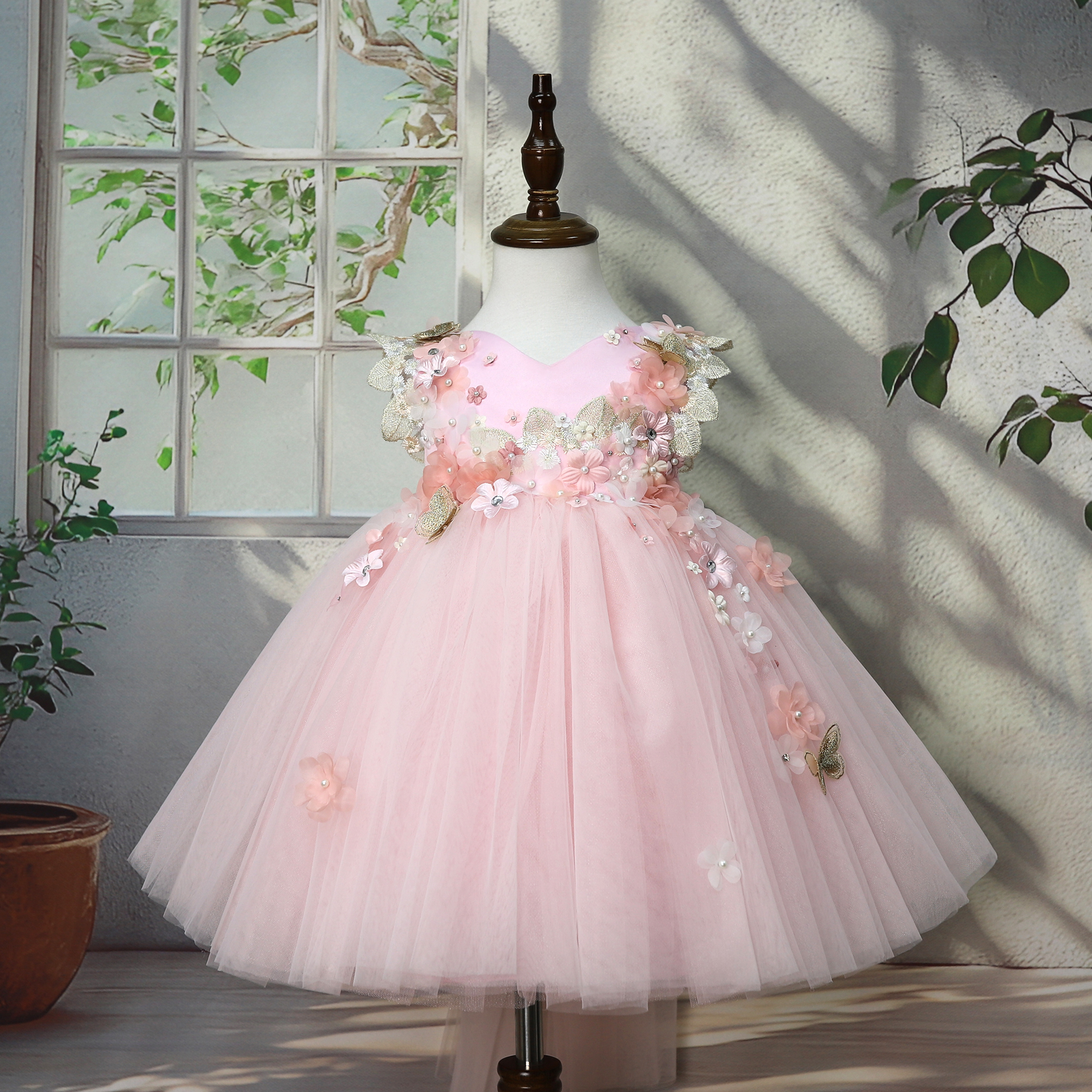 Wholesale Flower Embroidery Baby Girls princess wedding dress Party Birthday Dresses Tulle Ball Gowns flower dresses for girls